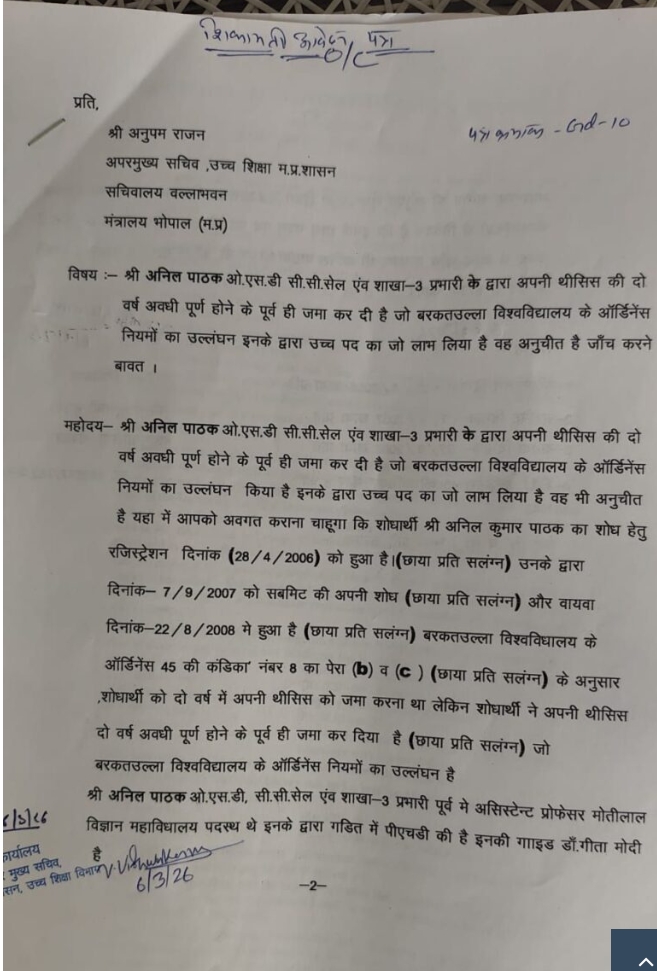 बरकतउल्ला विश्वविद्यालय के जो कुलगुरु हैं और रजिस्टर सिंह और उच्च शिक्षा के, PS श्री अनुपम राजन जी इन सब मामलों को लेकर क्या कार्रवाई करते हैं ।